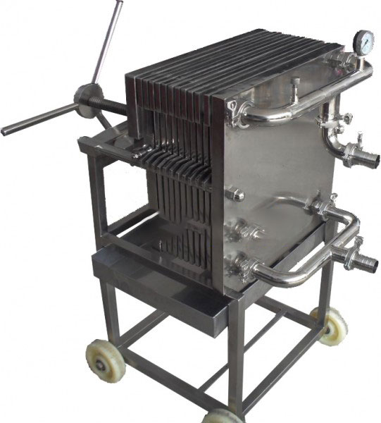 方型板框过滤器为不锈钢多层板框压滤机,适用于浓度50%以下,粘度较低,含渣量较少的液体作密闭过滤以达到提纯,灭菌、澄清等精滤、脱活性碳、除微粒、半精滤的要求,直接选用微孔滤膜,可不经微孔薄膜过滤器过滤可达到无菌过滤之目的)。方型板框过滤器过滤面积大,流量大,适用范围大,所以在制药、化工、食品等行业有广泛用途,应用在制药厂针剂药液之过滤,效果甚佳。