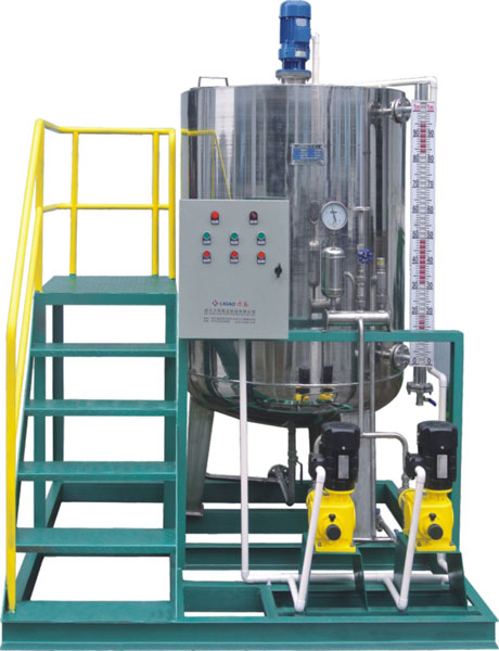 本装置主要包括药液溶配系统、计量投加系统、安全系统和控制系统等四部分。