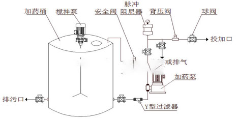 采用计量泵控制流量,搅拌器定时循环搅拌,实现手自一体功能。