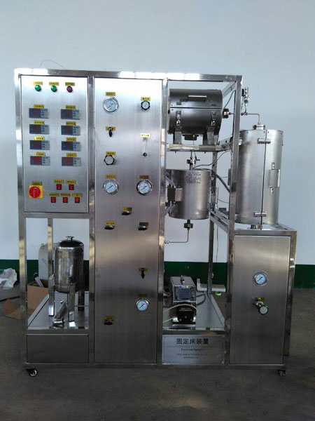 广泛用于高校、科研院所的开发试验,进行各种气固相反应工艺条件研究及催化剂评价、动力学研究。该装置具有可单独操作的双管式反应器系统,一个微分反应器及一个积分反应器(根据用户要求设计体积),同时为提高反应准确性和结果重现性,反应器配有预热器/预反应器系统。整个微分/积分复合反应系统含有可自控的两条液路,一条质量流量计检测及控制的气路、两个预热器、两个反应器、两个急冷器、两个气液分离器。产物不经冷却可在线分析全组分,也可经冷却后,液相取样进行分析或气相经进样六通阀进行在线分析。该装置系统的操作过程完全是在计算机控制下和恒温环境进行,包括进料、反应过程及样品分析,真正实现计算机全自控。